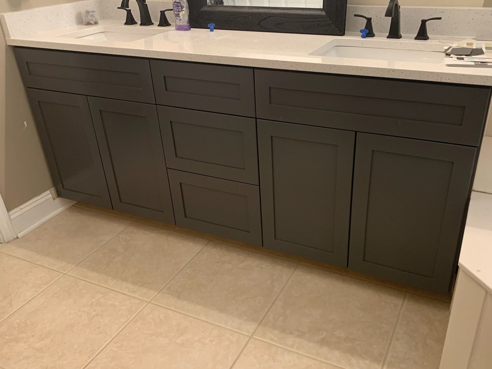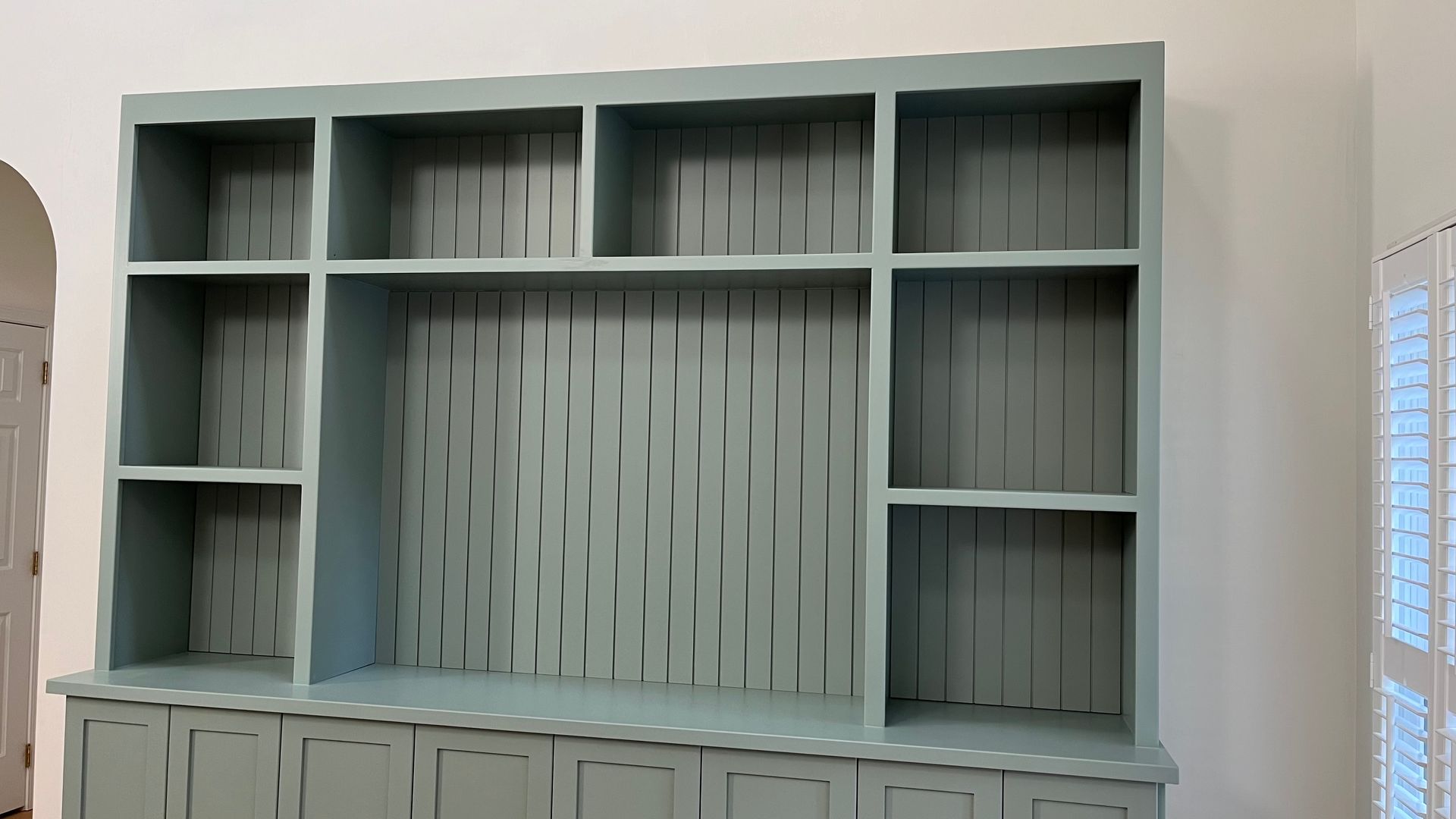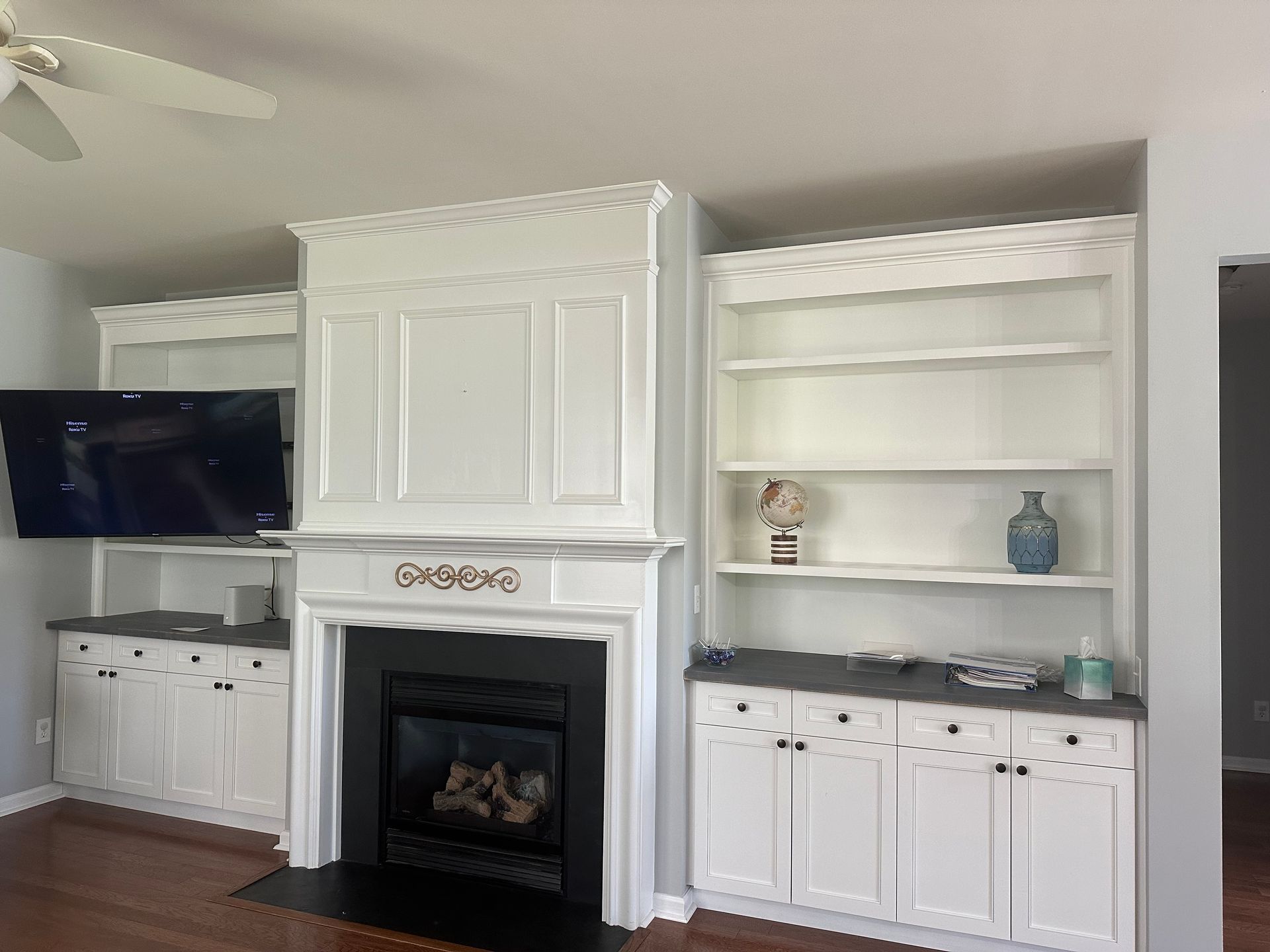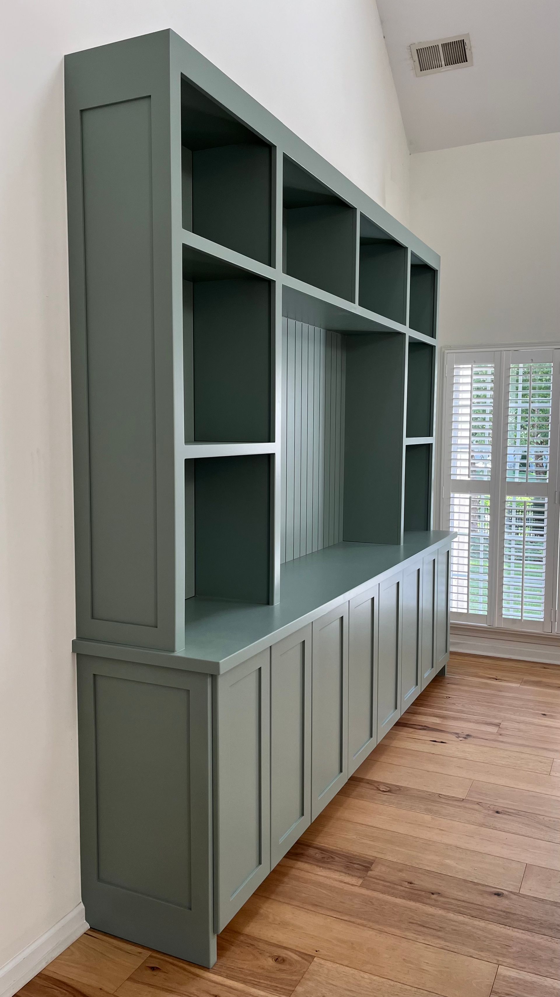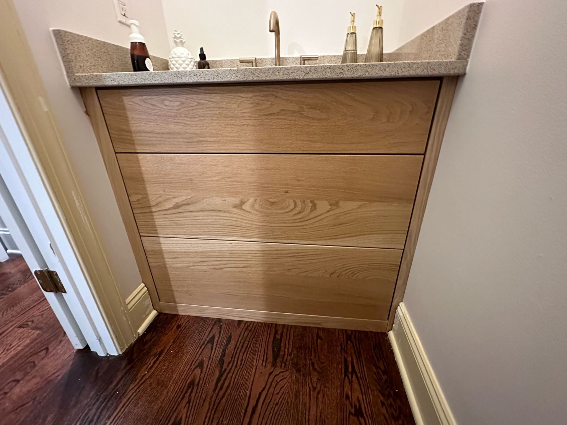 We are available to design, build and install any type of cabinetry you may need for your home. Examples of cabinets we offer: bathroom vanities, kitchen cabinetry, laundry room cabinetry, built-in shelving for your living room or home office, closet shelving and cabinetry, garage storage, etc.