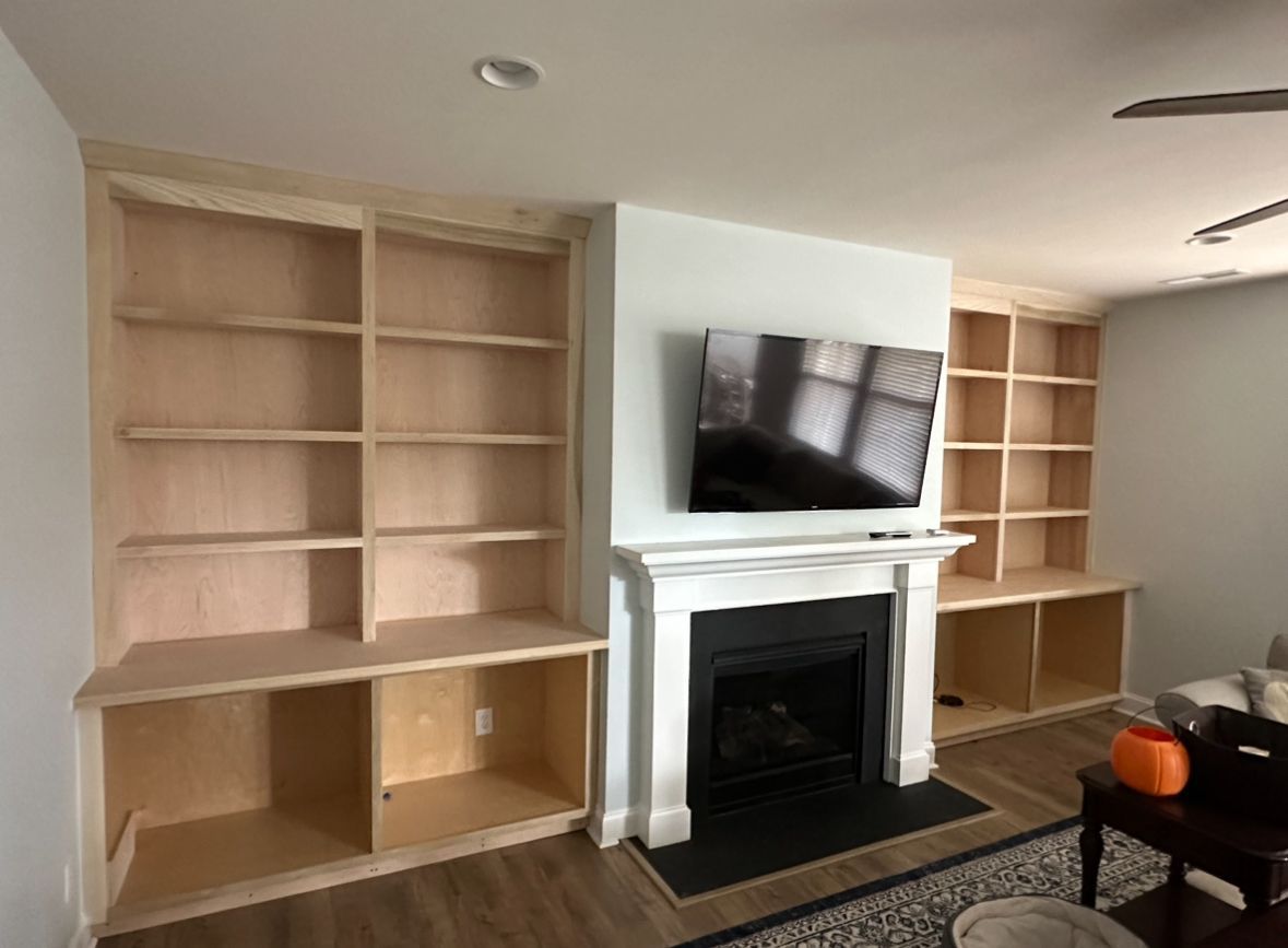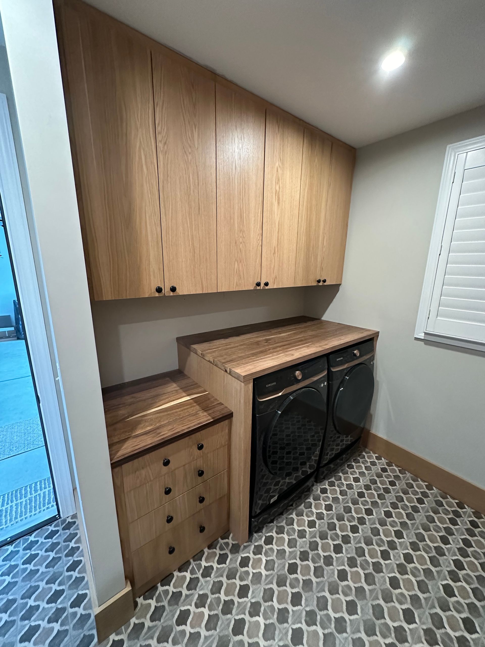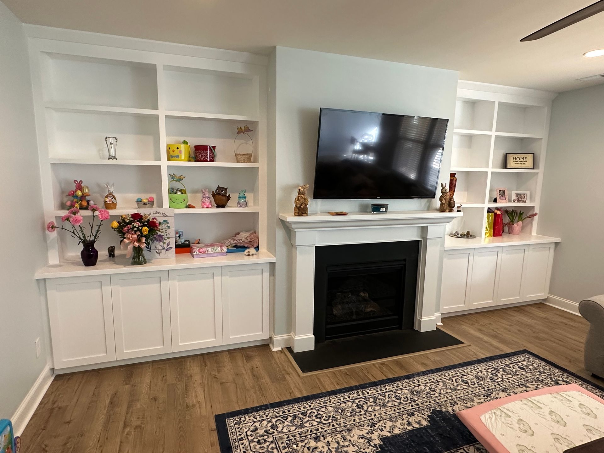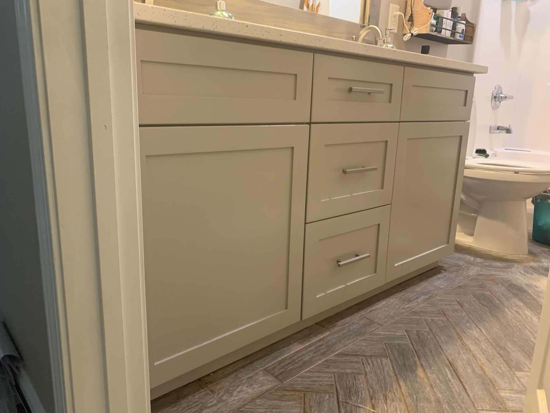 We are available to design, build and install any type of cabinetry you may need for your home. Examples of cabinets we offer: bathroom vanities, kitchen cabinetry, laundry room cabinetry, built-in shelving for your living room or home office, closet shelving and cabinetry, garage storage, etc.