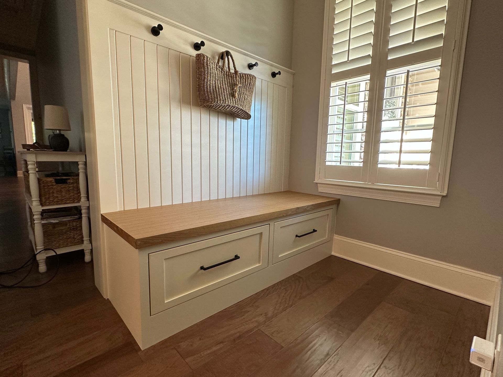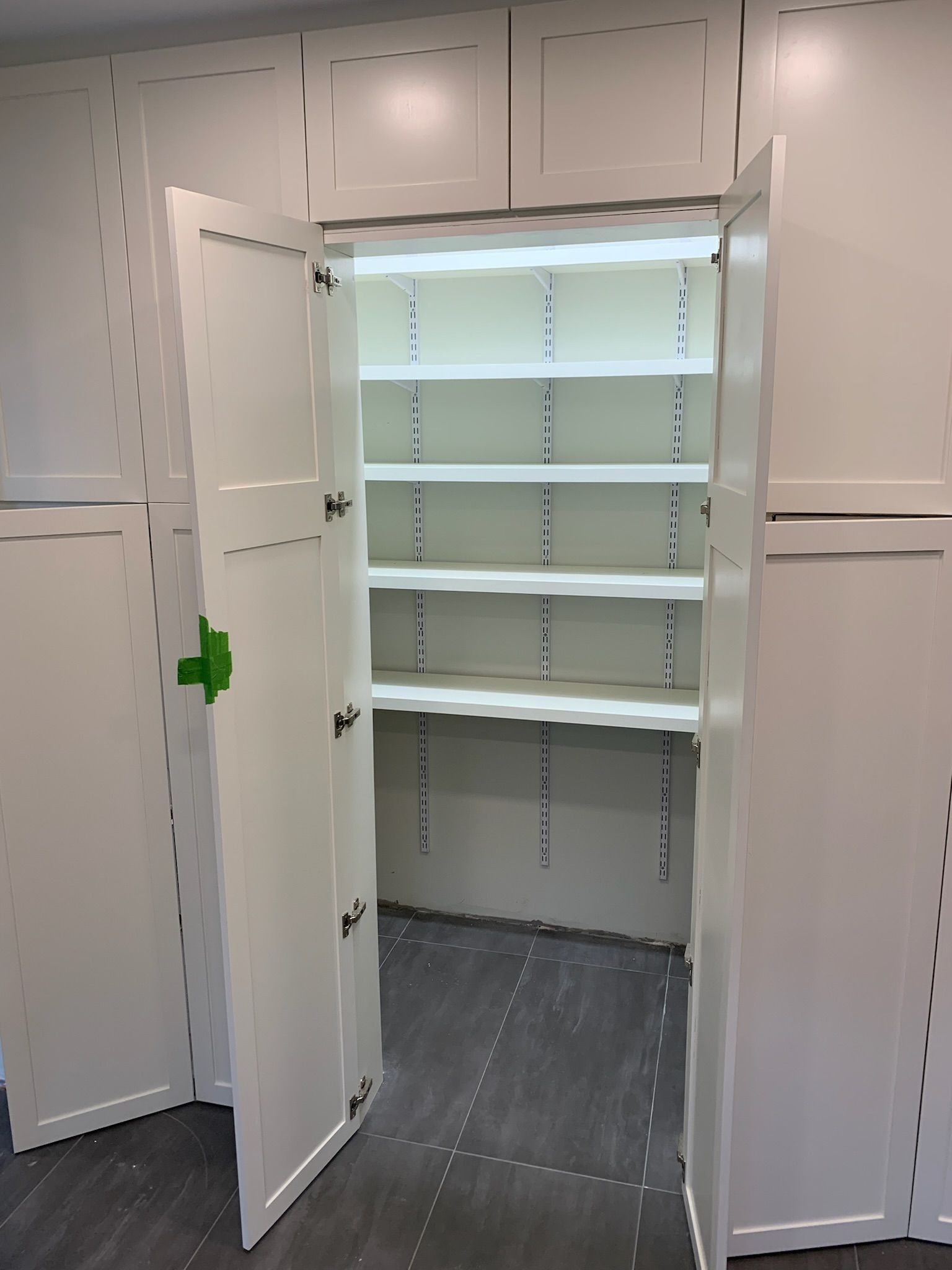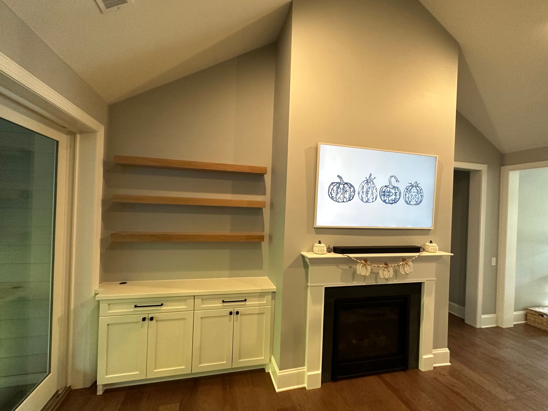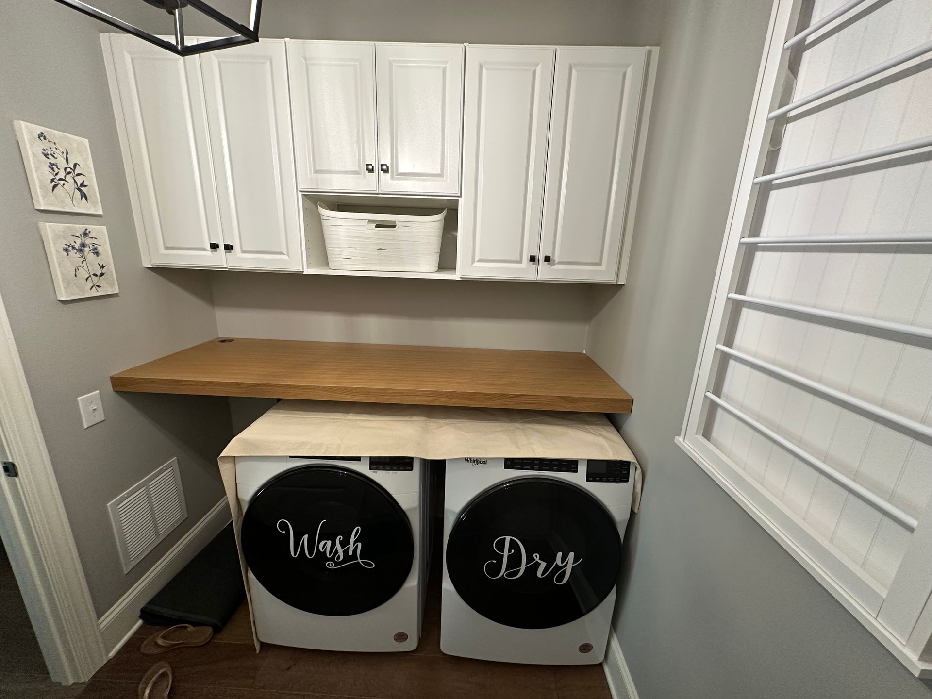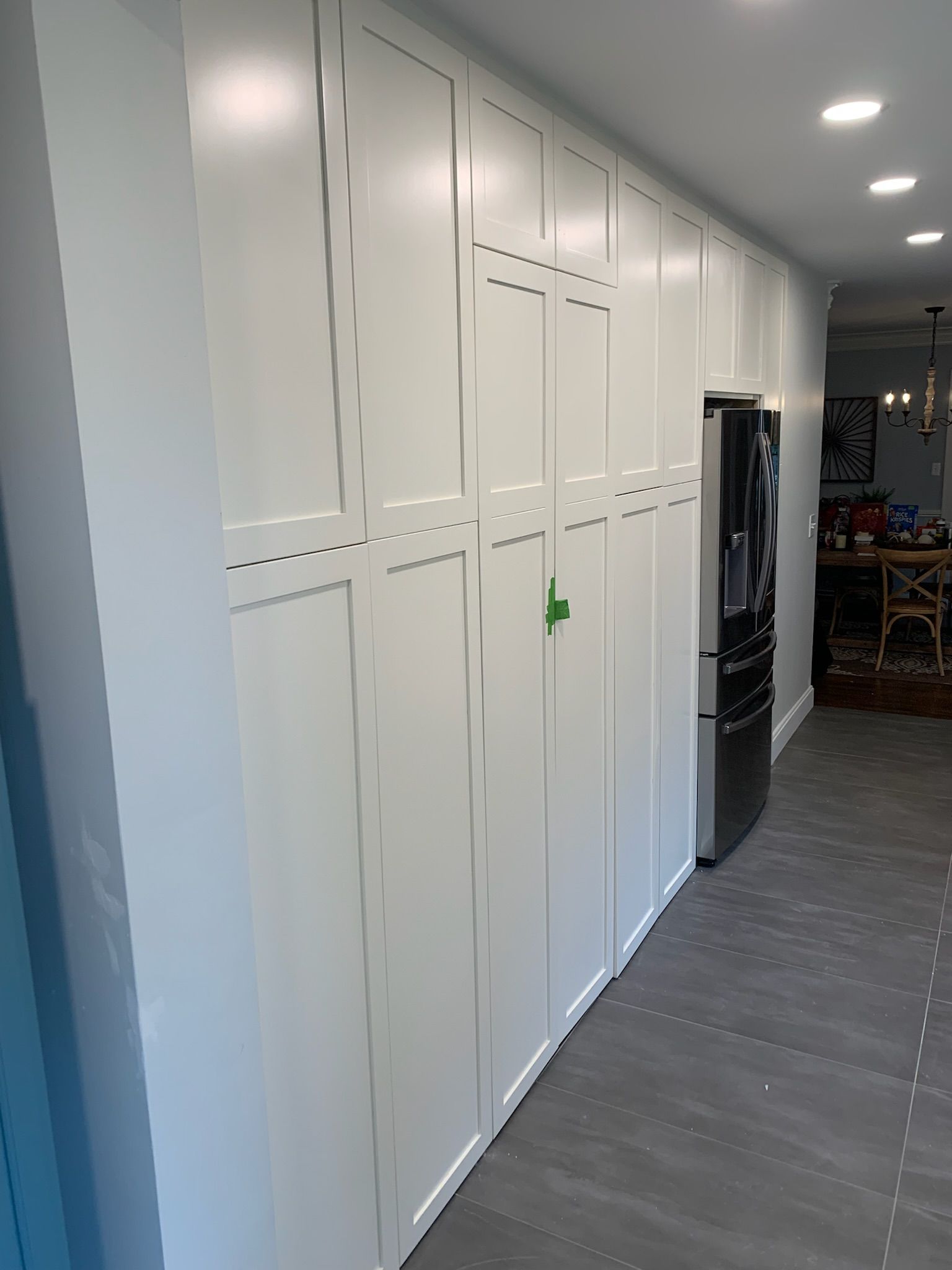We are available to design, build and install any type of cabinetry you may need for your home. Examples of cabinets we offer: bathroom vanities, kitchen cabinetry, laundry room cabinetry, built-in shelving for your living room or home office, closet shelving and cabinetry, garage storage, etc.