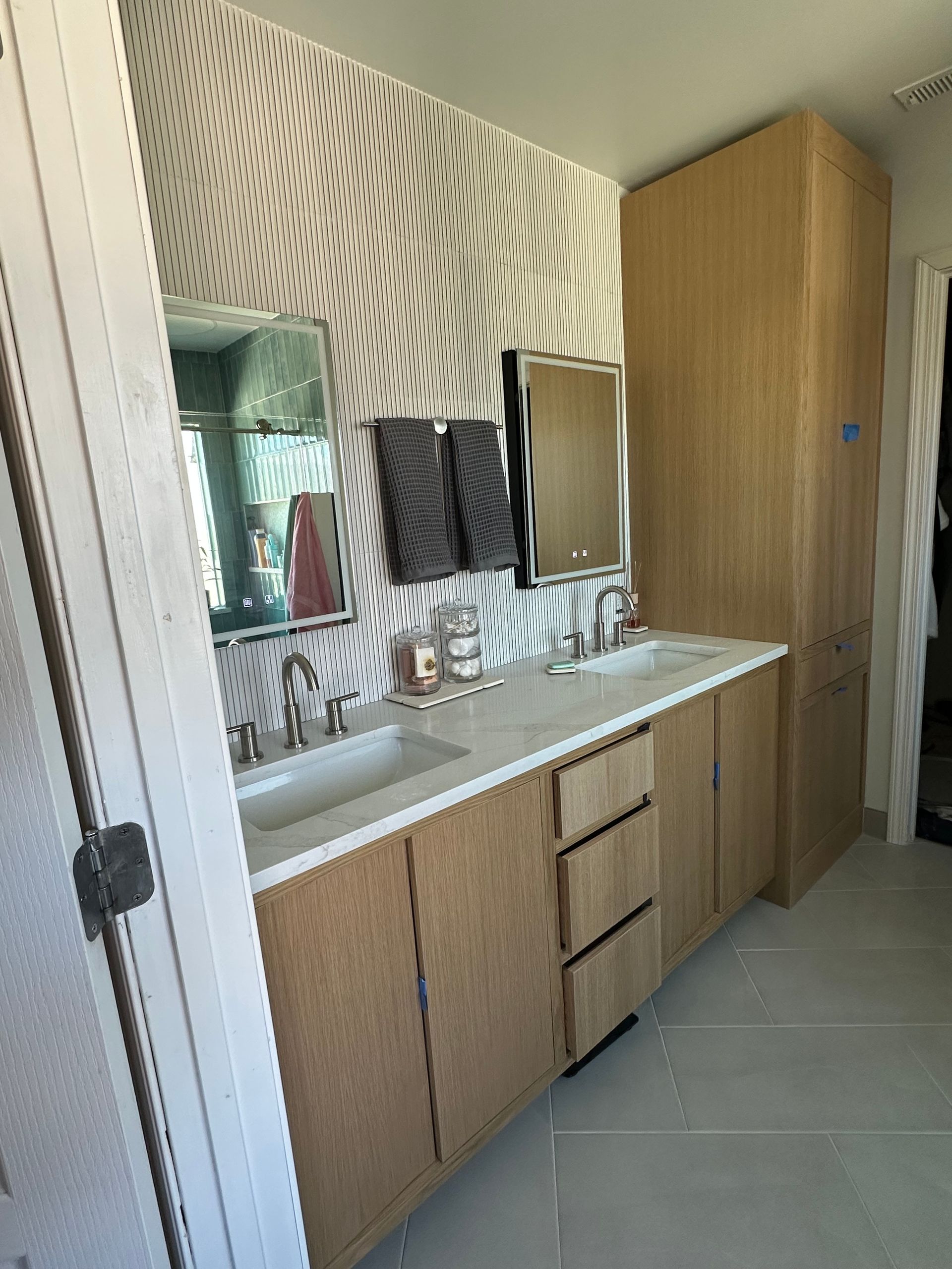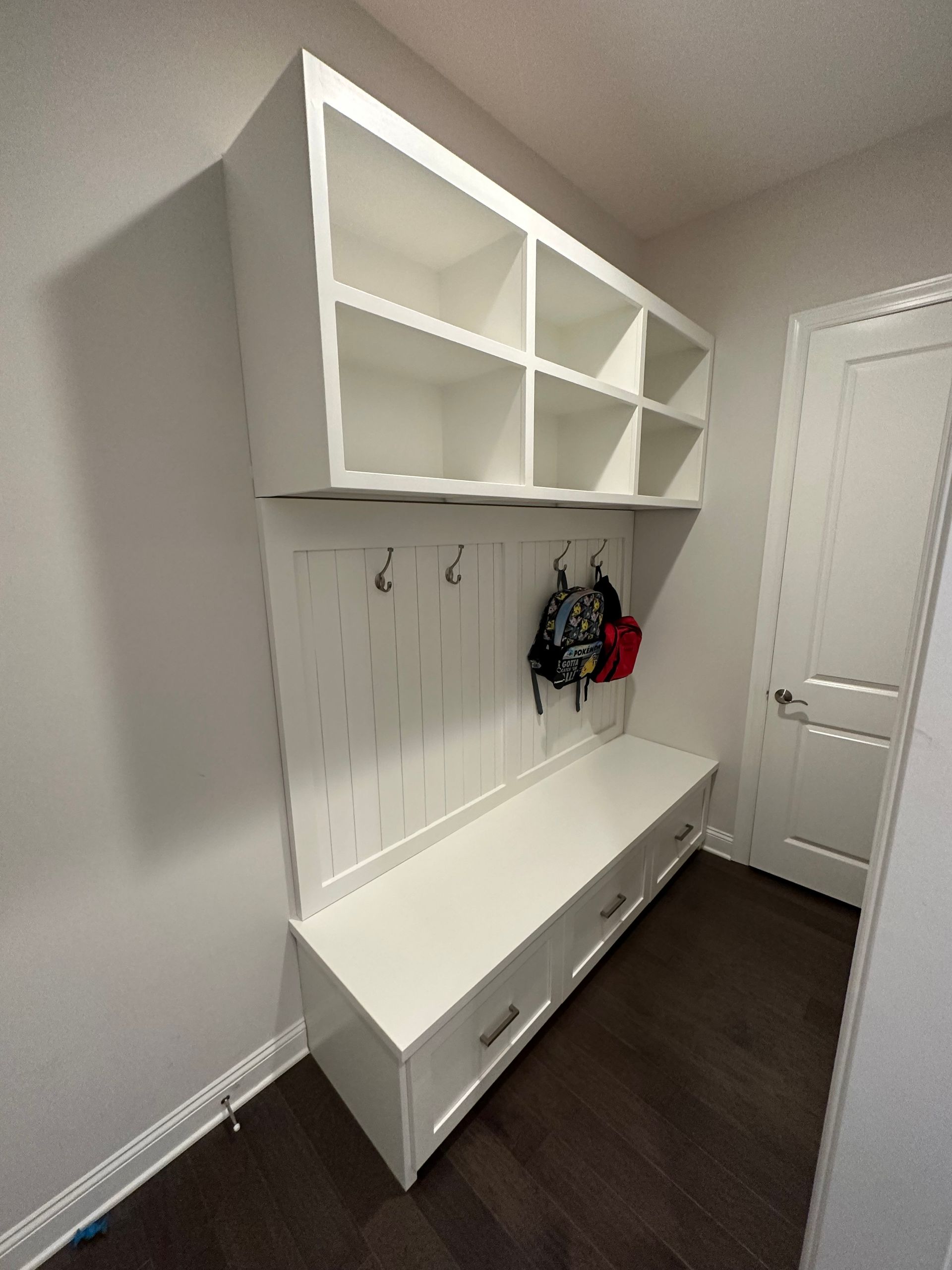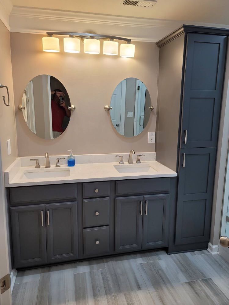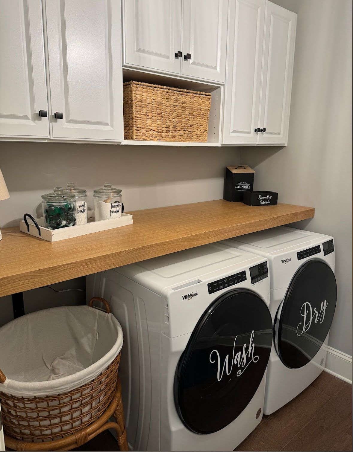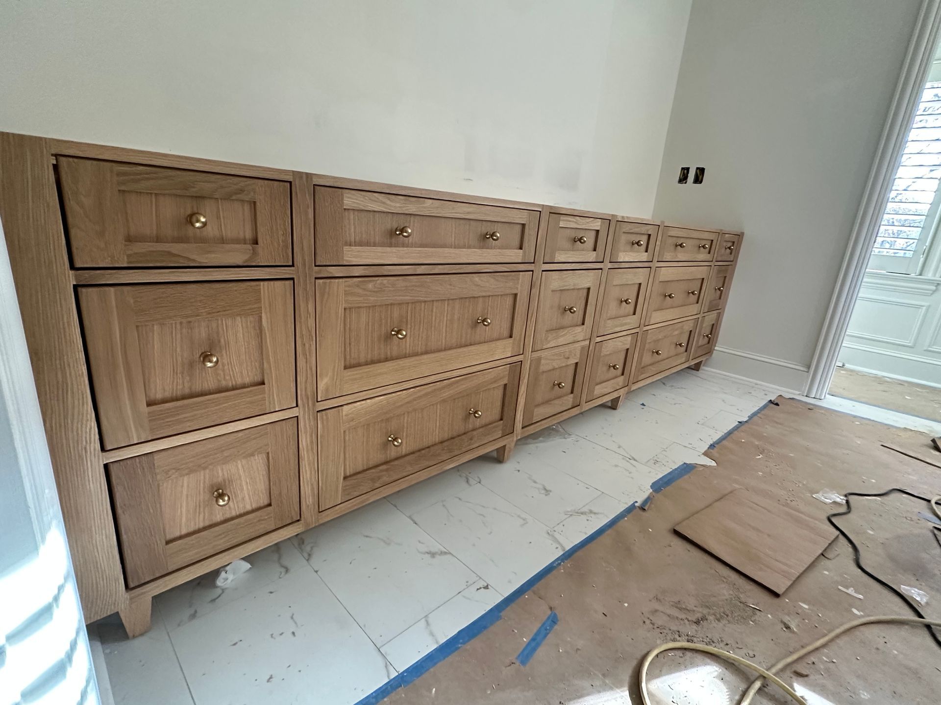 We are available to design, build and install any type of cabinetry you may need for your home. Examples of cabinets we offer: bathroom vanities, kitchen cabinetry, laundry room cabinetry, built-in shelving for your living room or home office, closet shelving and cabinetry, garage storage, etc.