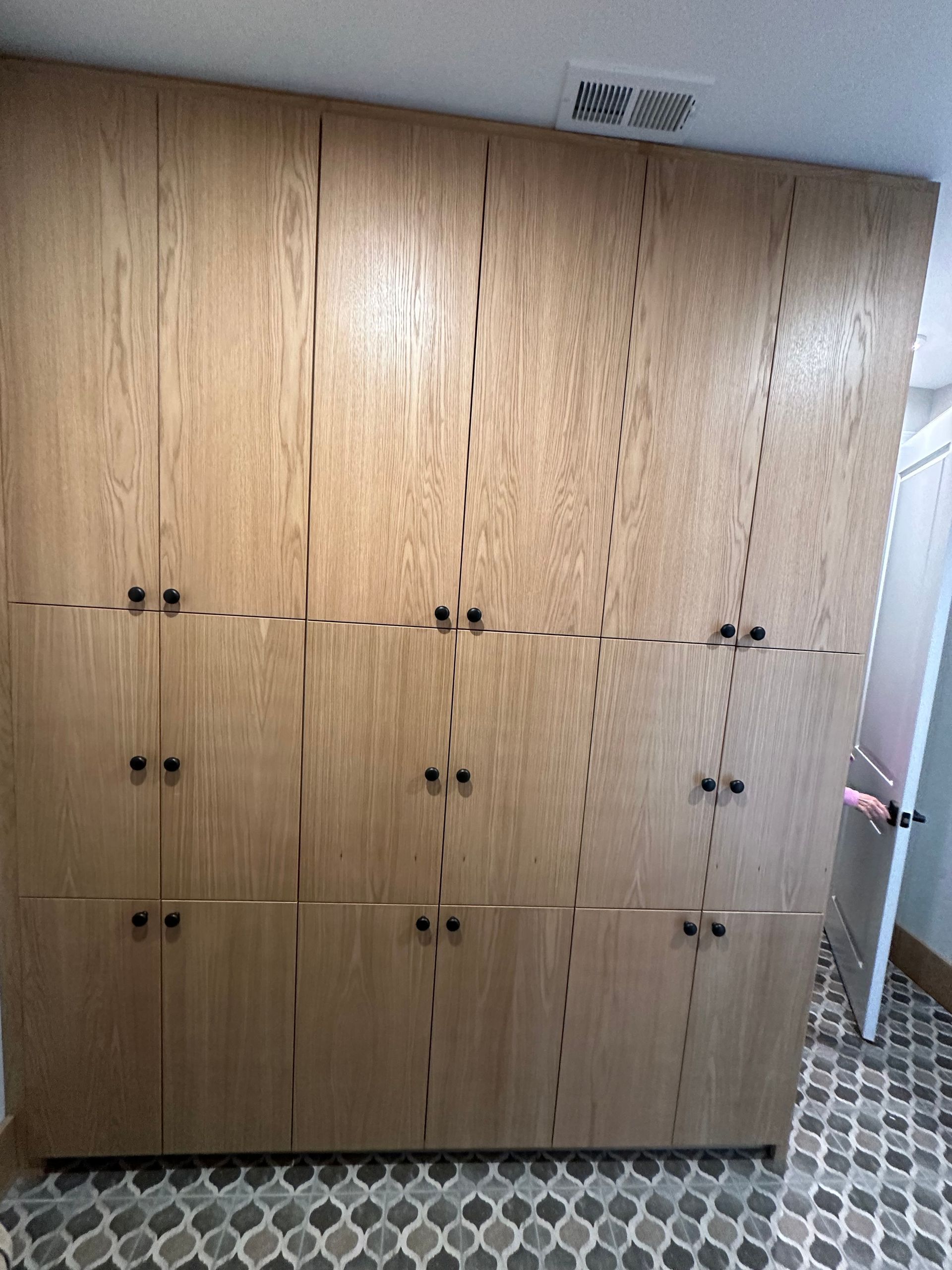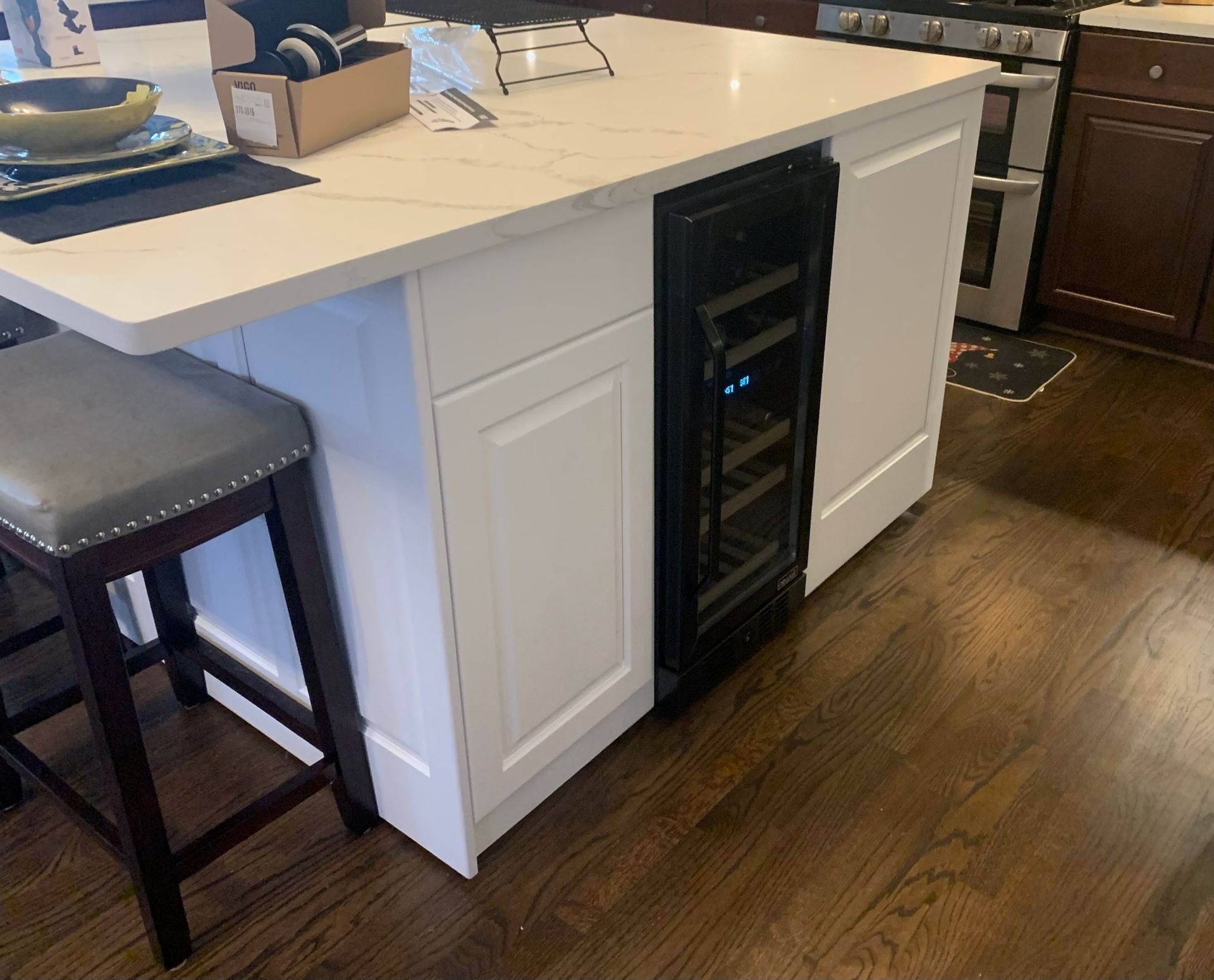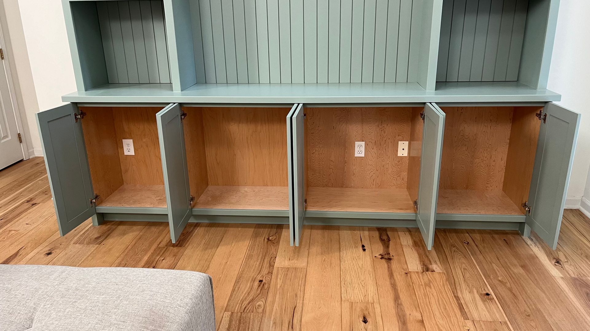 All of our cabinets are built using ¾” prefinished plywood for cabinet boxes and shelves. Many commercial cabinet manufacturers use particle board, plastic connectors and staples for box construction. Our cabinets are built to last. Commercial cabinet manufacturers build only in stock sizes which requires unnecessary fillers to fit your space. We will measure your space and build cabinets to fit your exact needs, creating a more finished look.